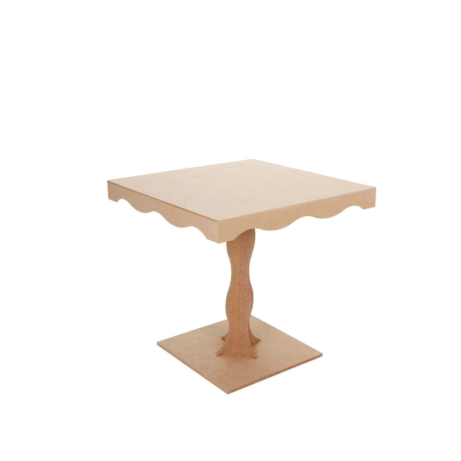 Adorno de madera MDF alta, cuenta con base cadrada que sostiene el poste diseño en cuatro caras, la parte superior cuenta con su base principal es cuadrada amplia,diseño tipo olan a su alrededor Este modelo es ideal para la realización de centros de mesa florales, temáticos. También decórala y dale eltoque perfecto a tu hogar