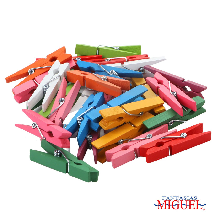 Pinzas de madera medianas surtido Se usan para cerrar bolsas, dulceros, presentes, complemento en manualidades, decoraciones