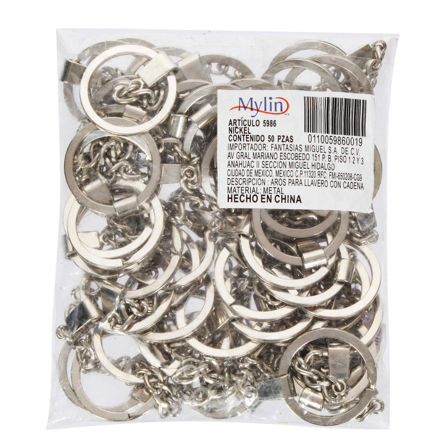 Llavero Fino Aro Con Cadena 30mm 50pz