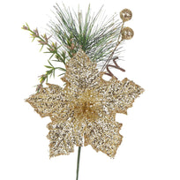 Adorno pick de Nochebuena con follaje de pino con toques diamantados, varas de cerezas diamantadas pétalos metálico-diamantado Es ideal para la decoración de arreglos florales, complemento en decoraaciones navideñas como guías y coronas