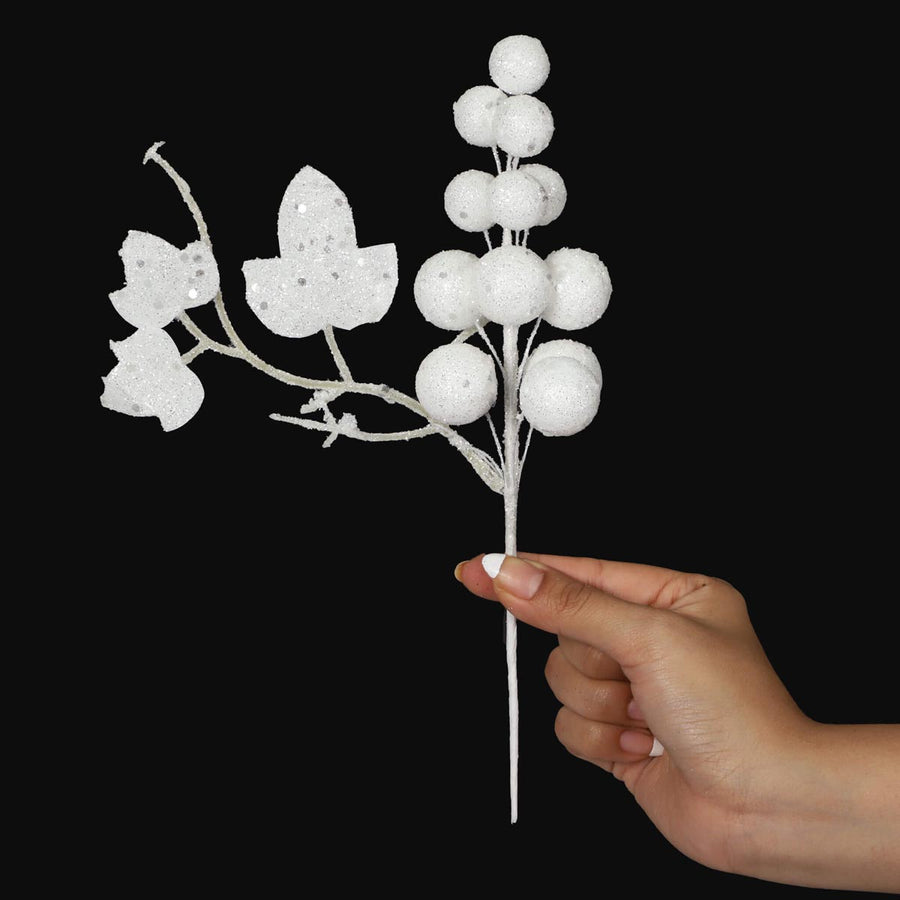 Adorno pick de uvas diamantadas con hojas brillantes Son ideales para complementar centros de mesa, canastas, arcones y emplayados navideños