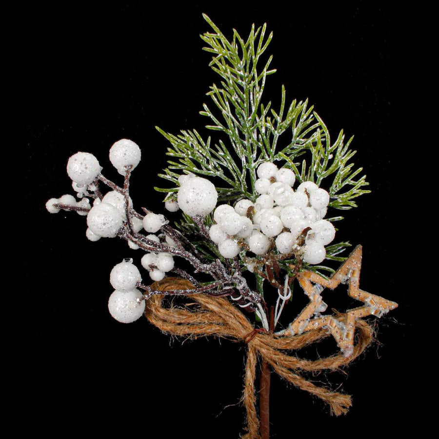Adorno pick navideño mini esferas en blanco, contorno de estrella y mecate en natural Son ideales en decoraciones navideñas, tambien úsalas en cajas, botes, canastas o arcones navideños