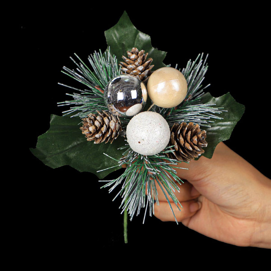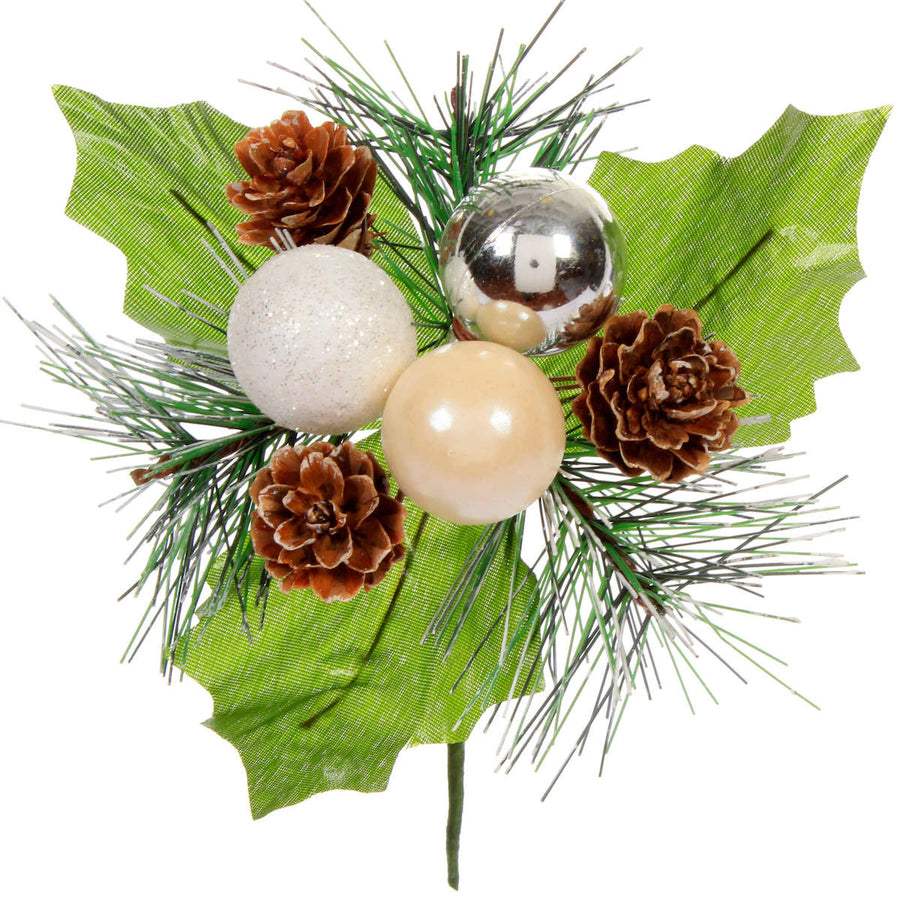 Pick Esferas Plata/Blanco 14cm 1pz